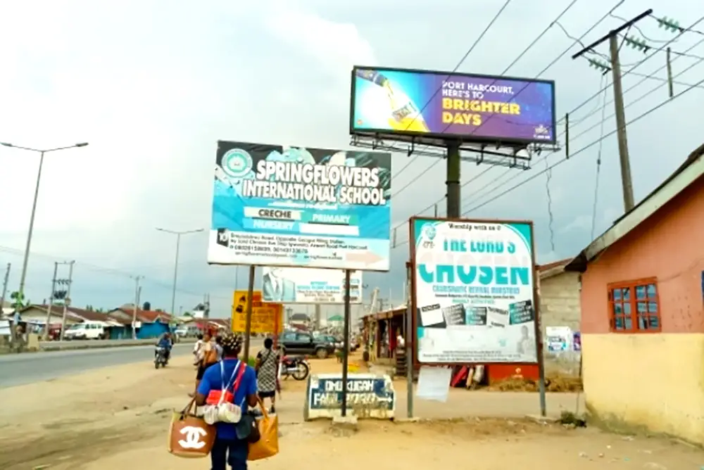 Along Airport Road Before Airport Hotel Facing Traffic From From Airport.